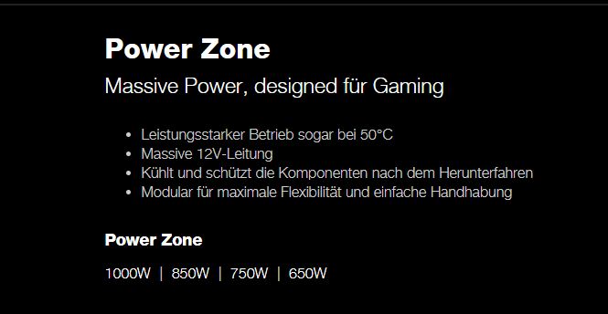 Sie sehen die Serien der Netzteile und darunter eine Unter-Überschrift, die dann die USPs der Produktserie widerspiegelt.